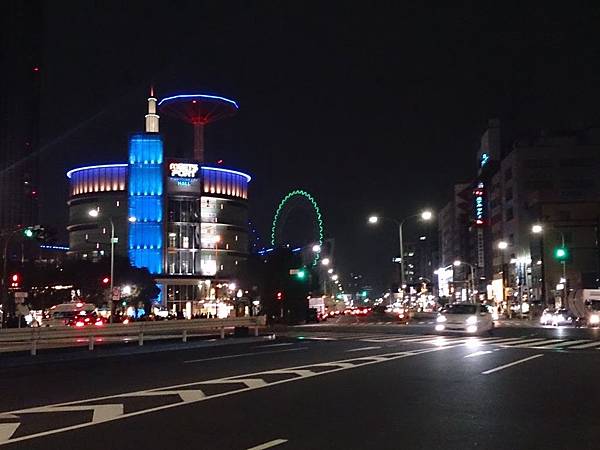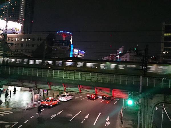 夜色中 藍色一條弧線的 就是東京巨蛋