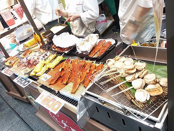 黑門市場離民宿很近,大約8分鐘路程,在黑門市場胃口大開,沿途吃了草莓麻糬,海鮮握壽司,烤明蝦,烤鰻魚,買了很多零食,