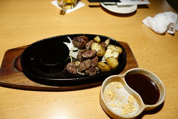 他的醬料真的是一絕,除了雞肉串普普之外,烤魷魚 ,豬肉串,玉子燒每道都好吃, 它炙燒的牛排不輸神戶牛,這樣吃下來六千多日幣我覺得還OK~